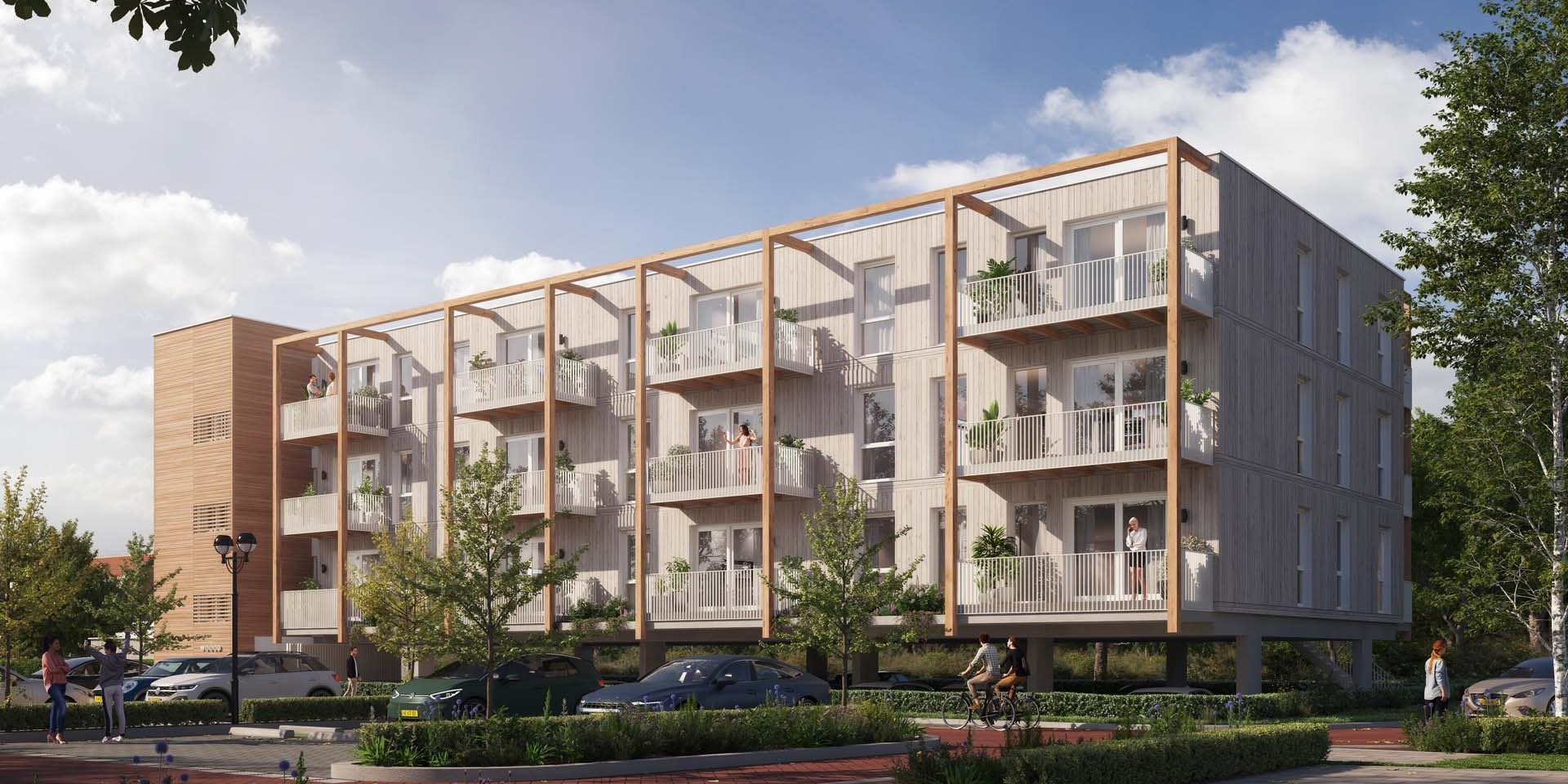 In het nieuw te bouwen project WOOOD in Leidschendam komen straks 15 koopappartementen. Moderne tweekamerappartementen van circa 60 m² en vierkamerappartementen van circa 90 m² of circa 120 m².